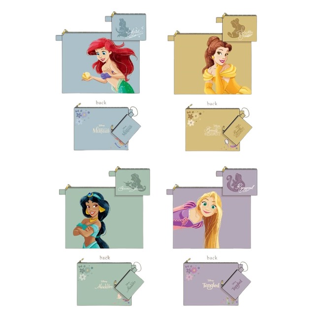 ディズニープリンセス くすみシリーズ 2連ポーチ アリエル リトルマーメイド ラプンツェル ベル 美女と野獣 アラジン ジャスミン