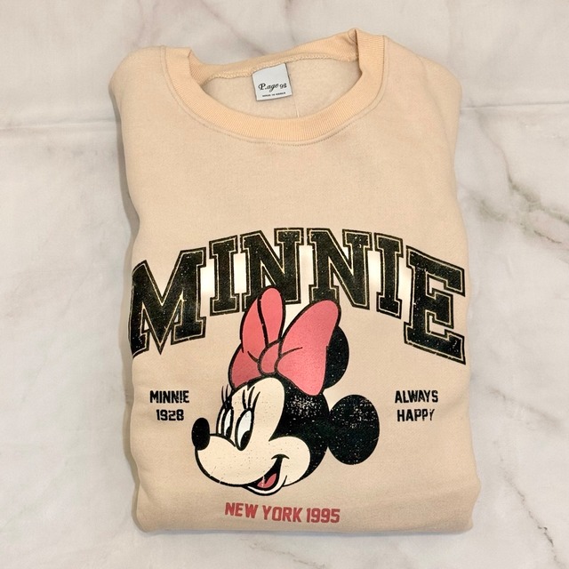 裏起毛素材で暖かいミニーちゃんが大きくデザインされたトレーナー。 シンプルな形でどんなボトムスとも相性抜群の万能な1枚です♪ 全体的にゆったりとしたオーバーになりすぎないサイズ感です。 *サイズ* フリーサイズ 着丈:65cm 身幅:58cm 必ず『当店ついて』または『ショップ情報』をご確認の上ご注文ください。