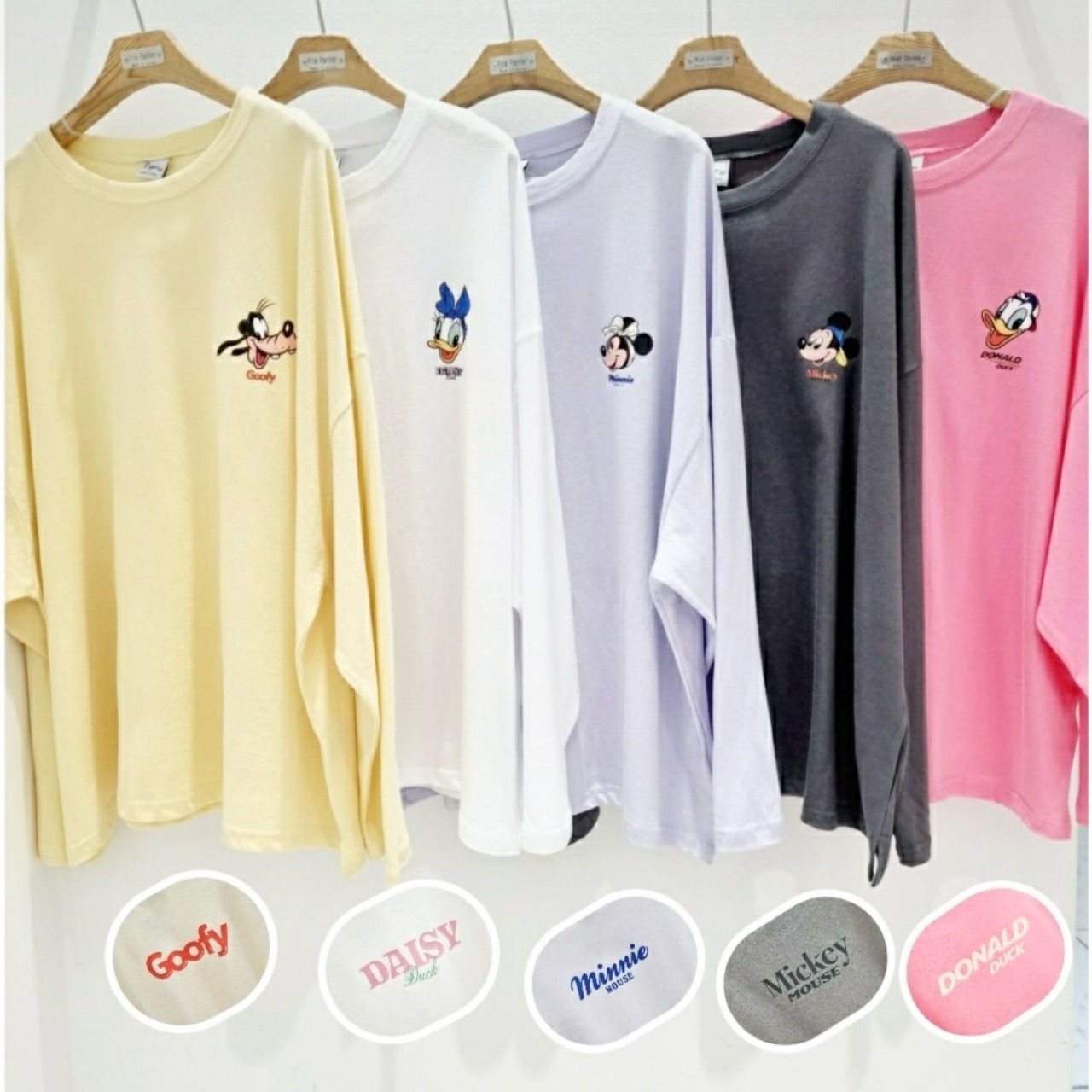 ワンポイントディズニーキャラクターカラーロングTシャツ ミッキー ミニー グーフィー ドナルド デイジー