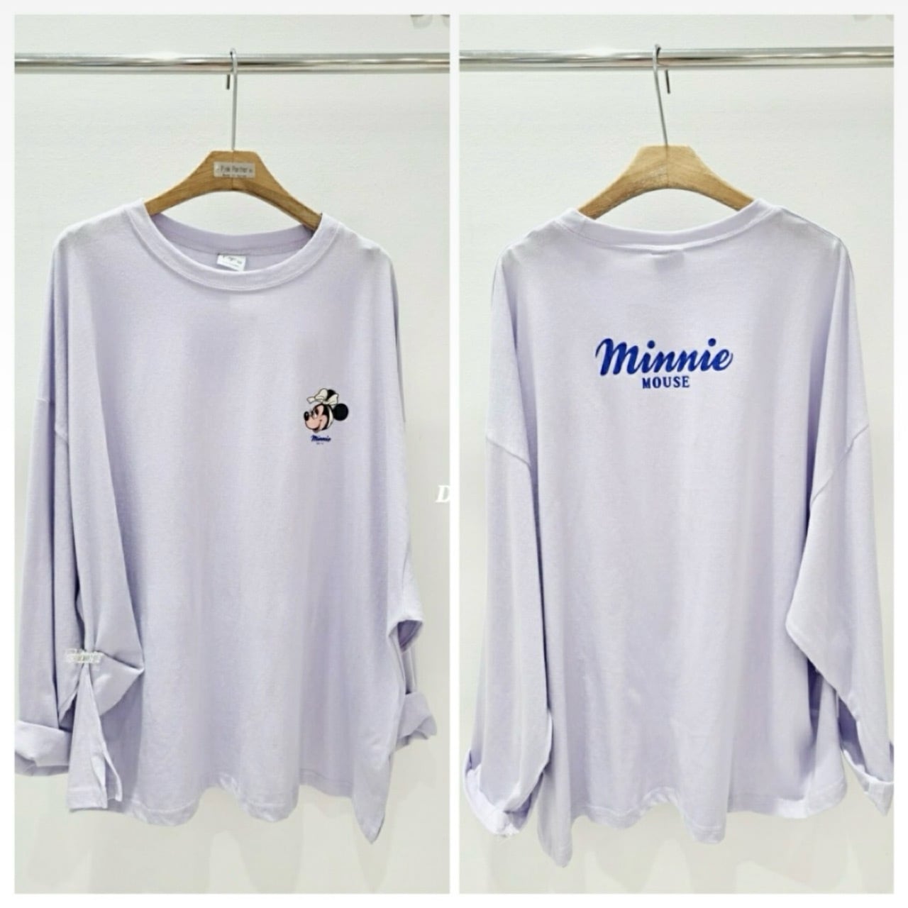 大人気ディズニーキャラクターがワンポイントで施されたカラートップス。