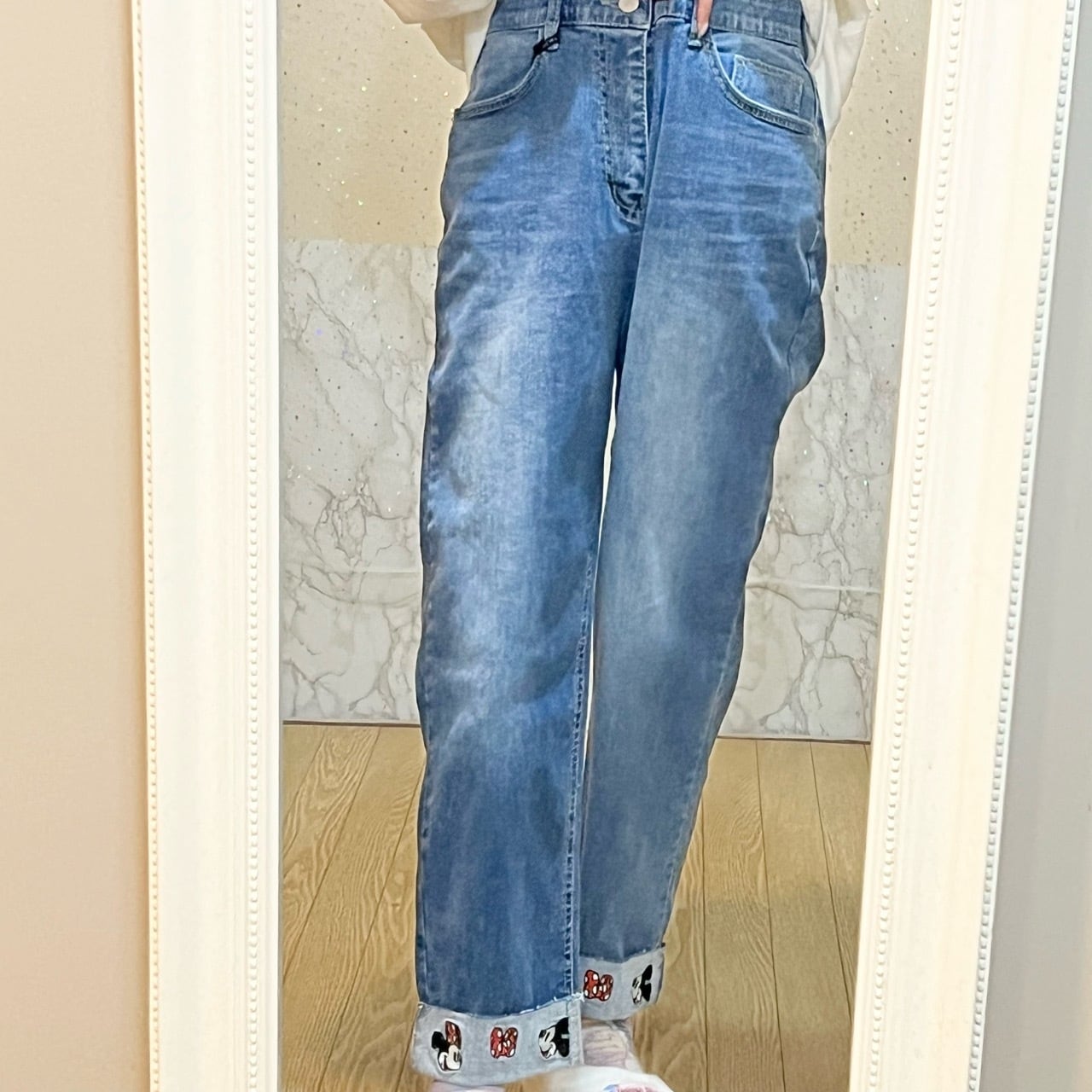 さりげない足元のミッキー&ミニーのデザインがオシャレな1枚です。