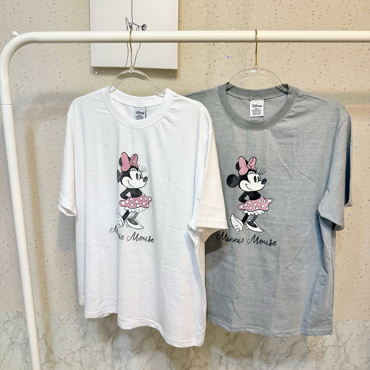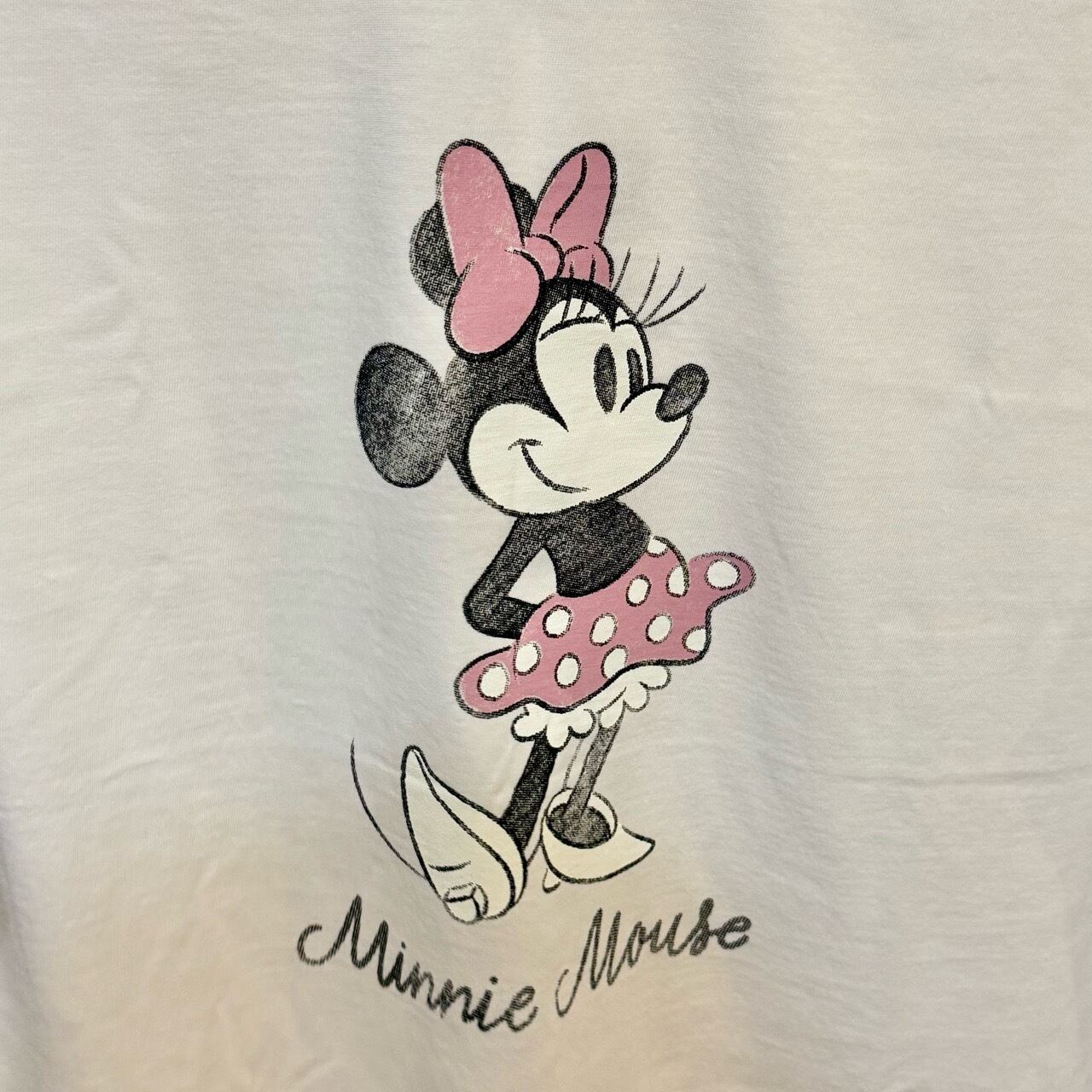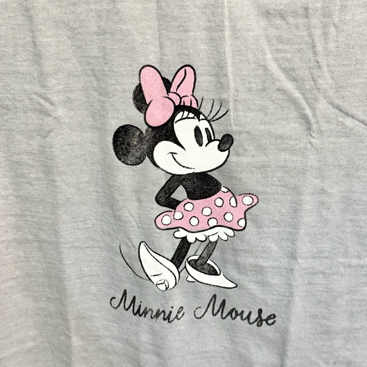 ミニーちゃんの色味もくすみカラーでデザインされていて古着風になっているのがポイント♪