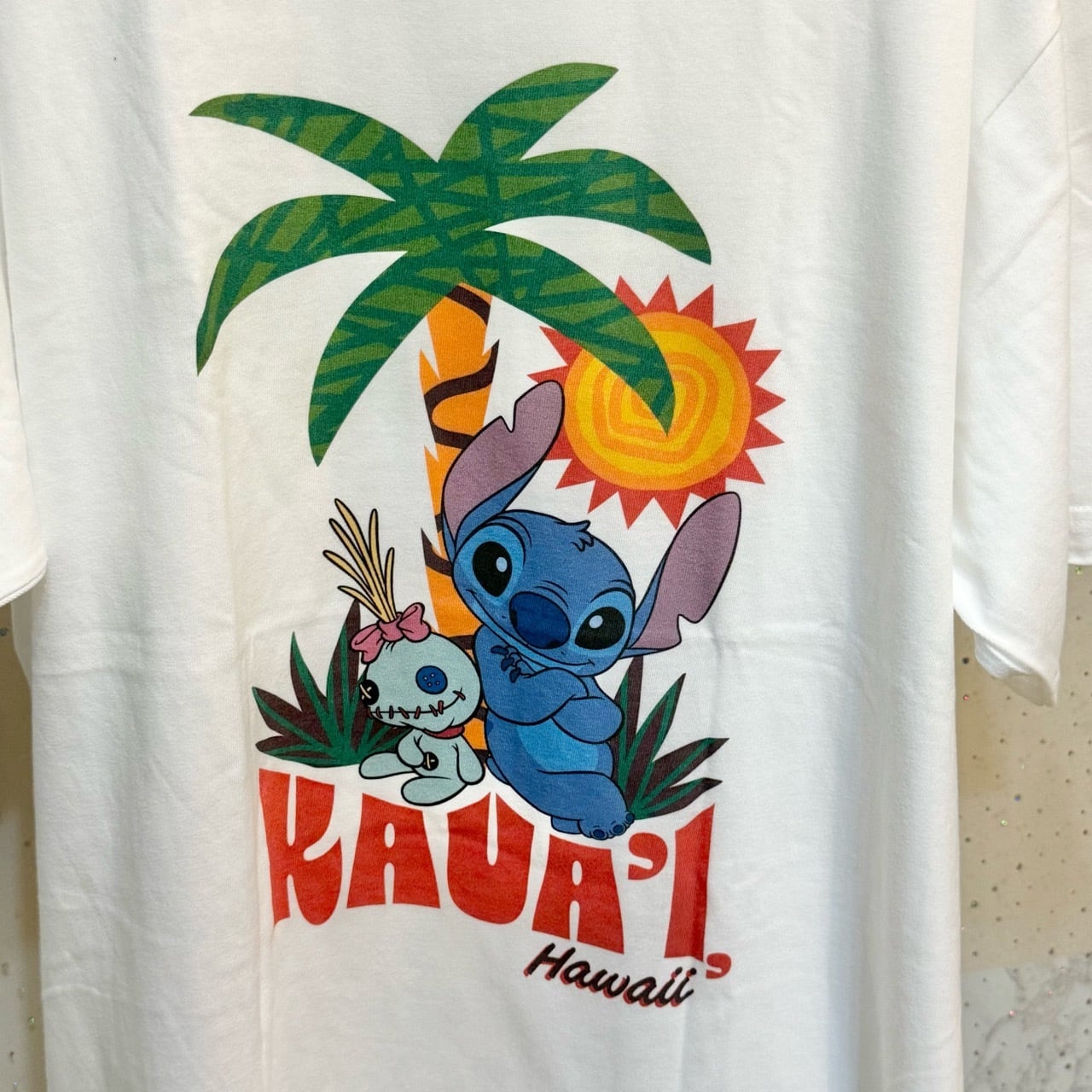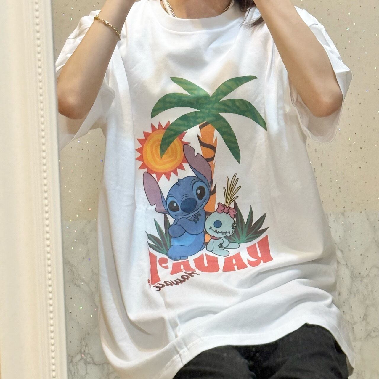 スティッチとスクランプが大きくデザインされたTシャツ。