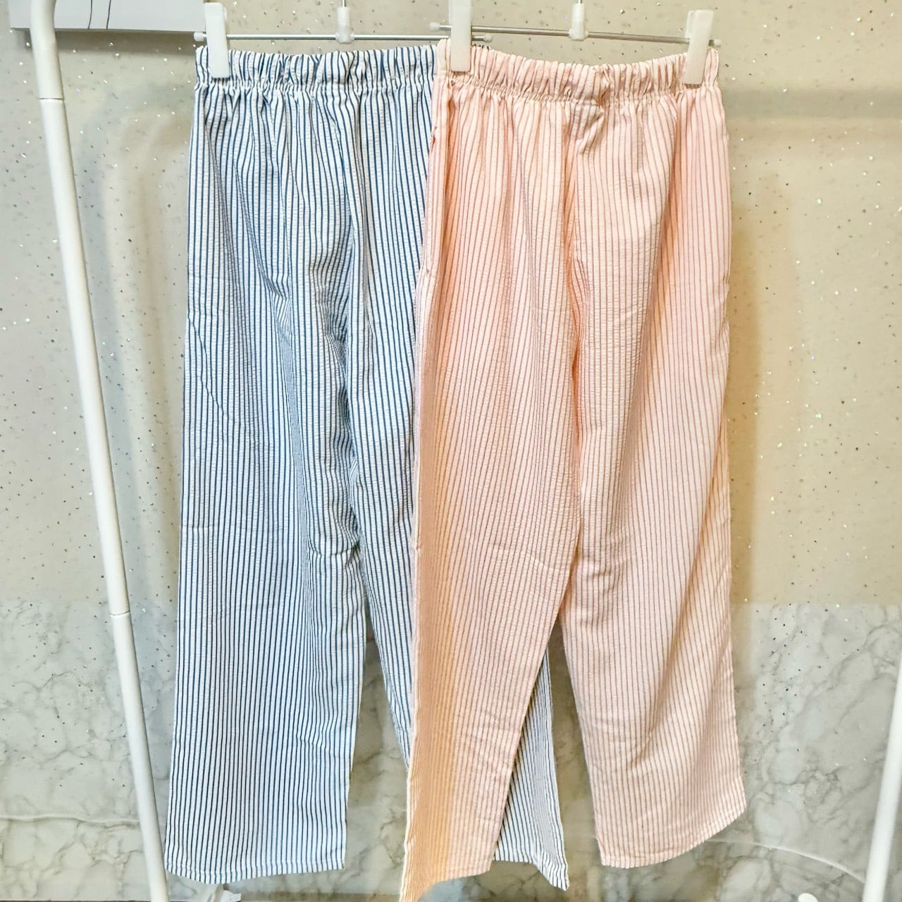 薄くて通気性が良く足さばきも抜群のストライプ柄パンツ。