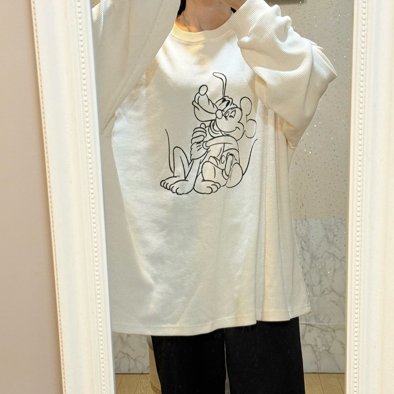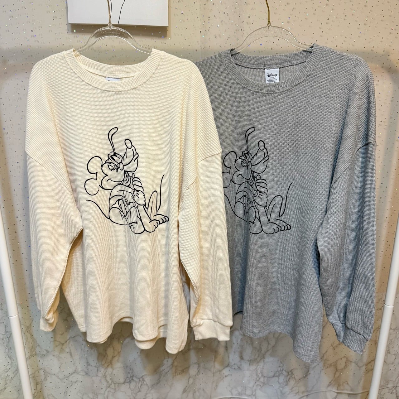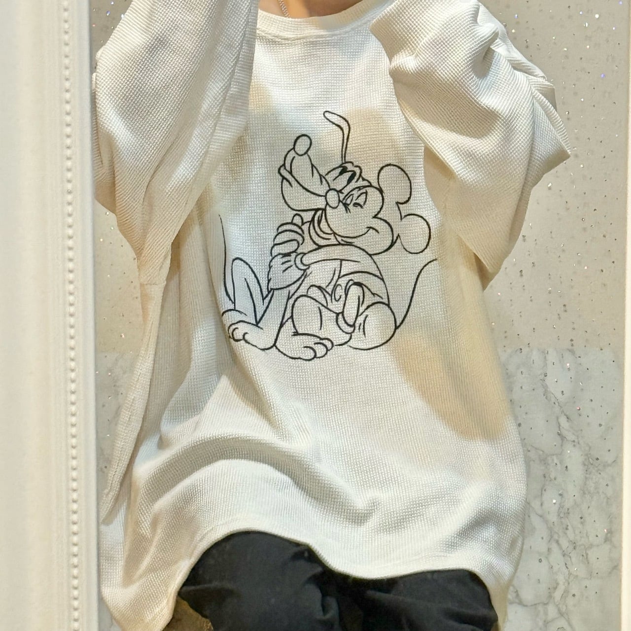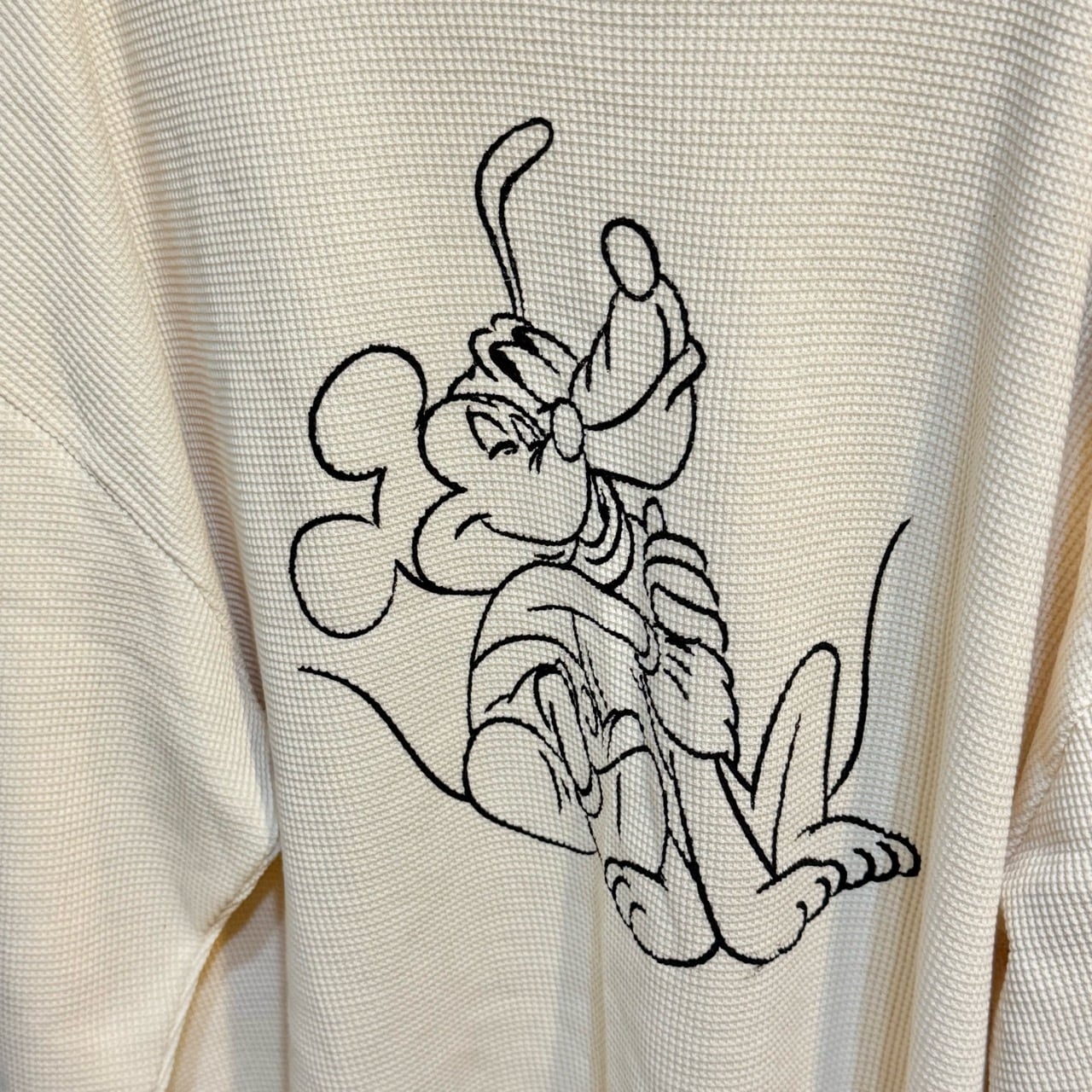 ワッフルデザインと手書き風タッチのミッキー&プルートがオシャレなデザイントップス♪