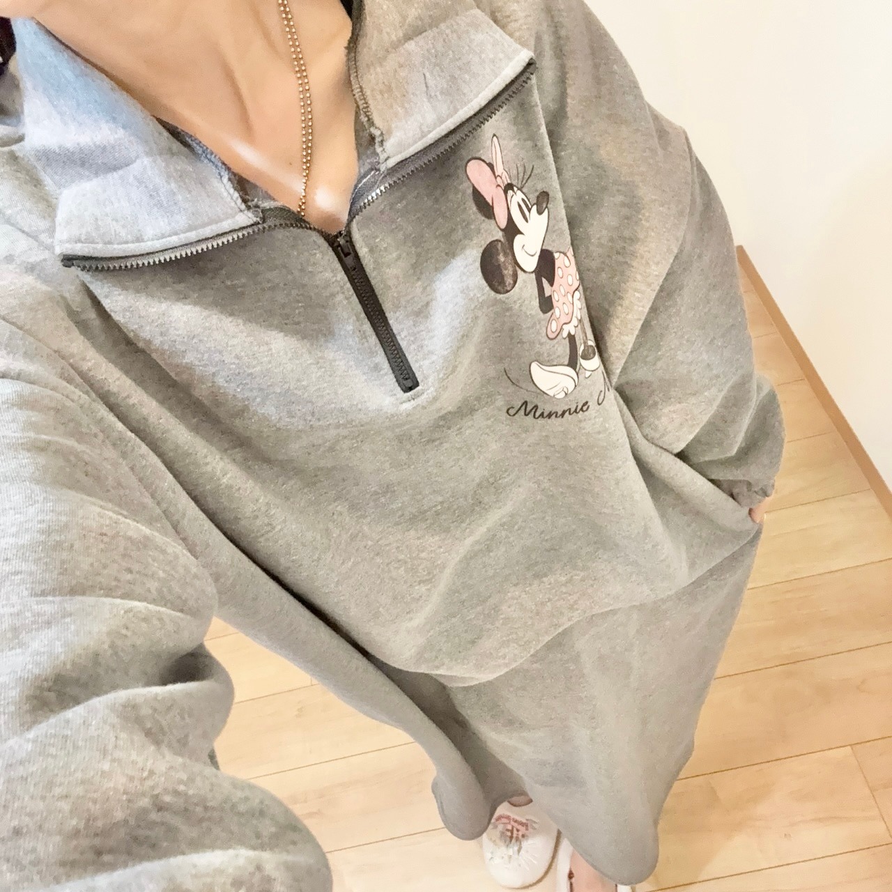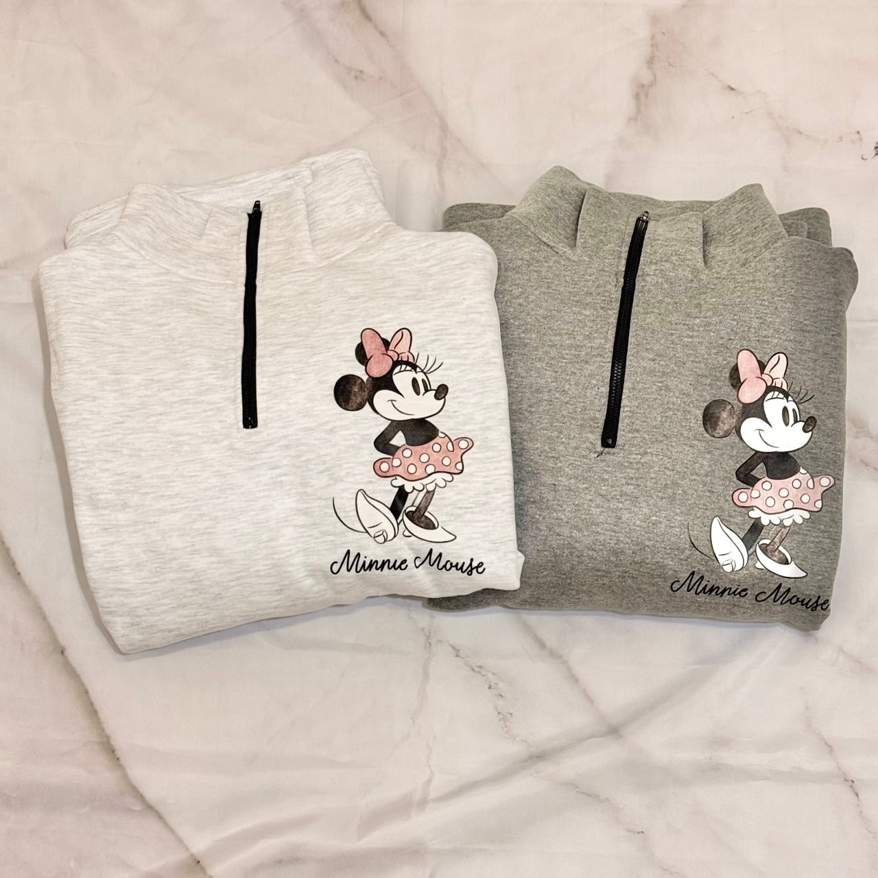 ヴィンテージ感溢れるミニーちゃんのデザインとトレンドのハーフジップがオシャレなアイテム。