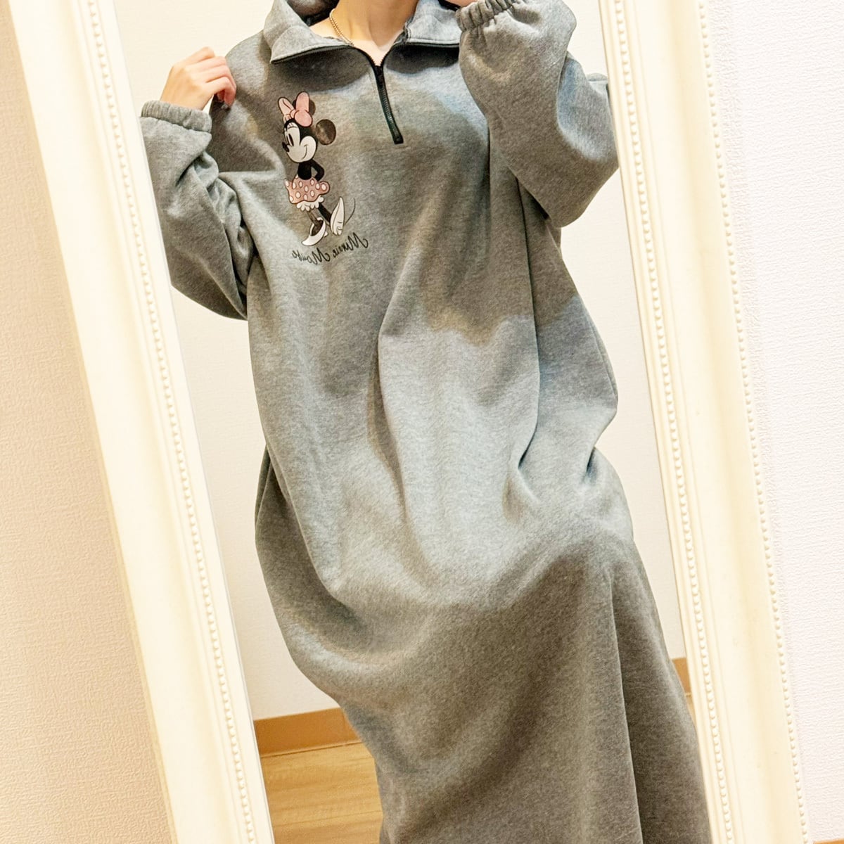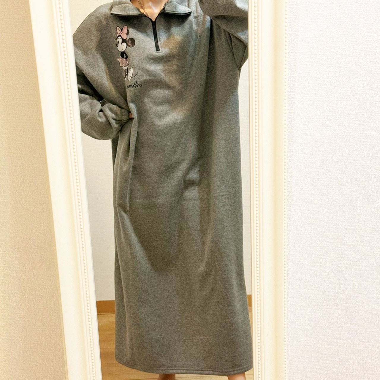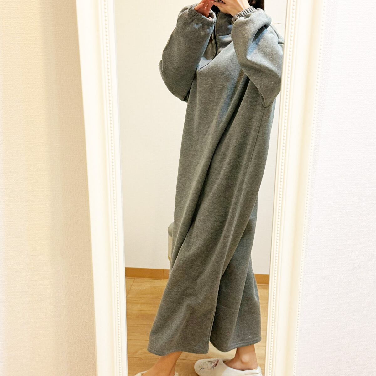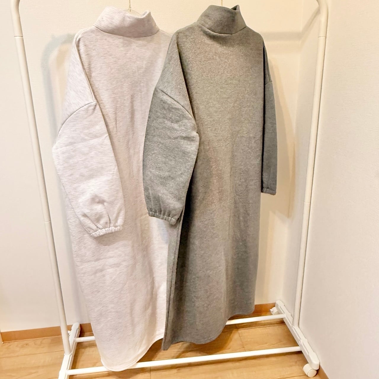 裏起毛素材で暖かいワンピース。ちょっとしたお出かけもコーデを考えずこれ1枚でオシャレに決まります。