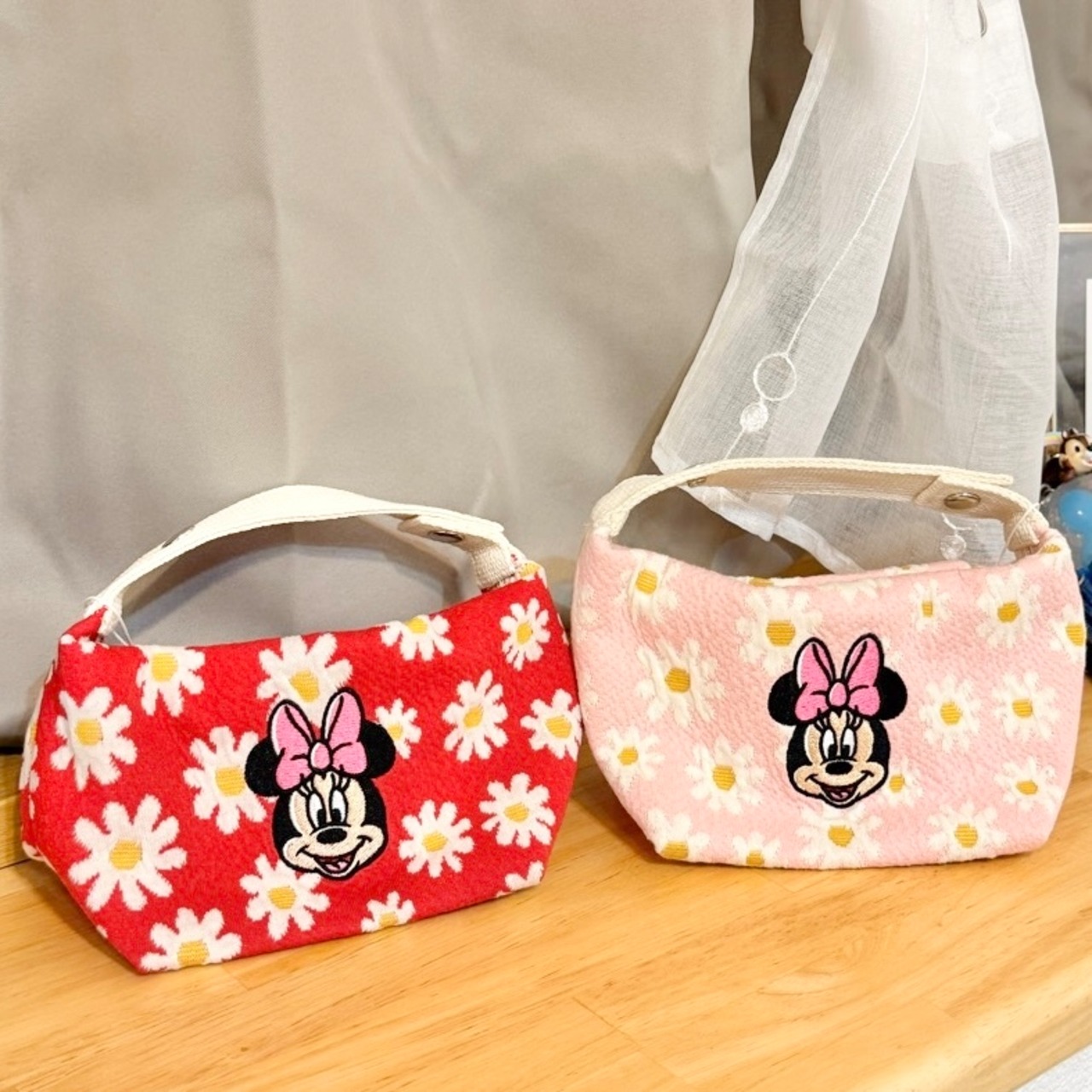 ミニーちゃん×花柄のデザインが華やかなポーチです♪