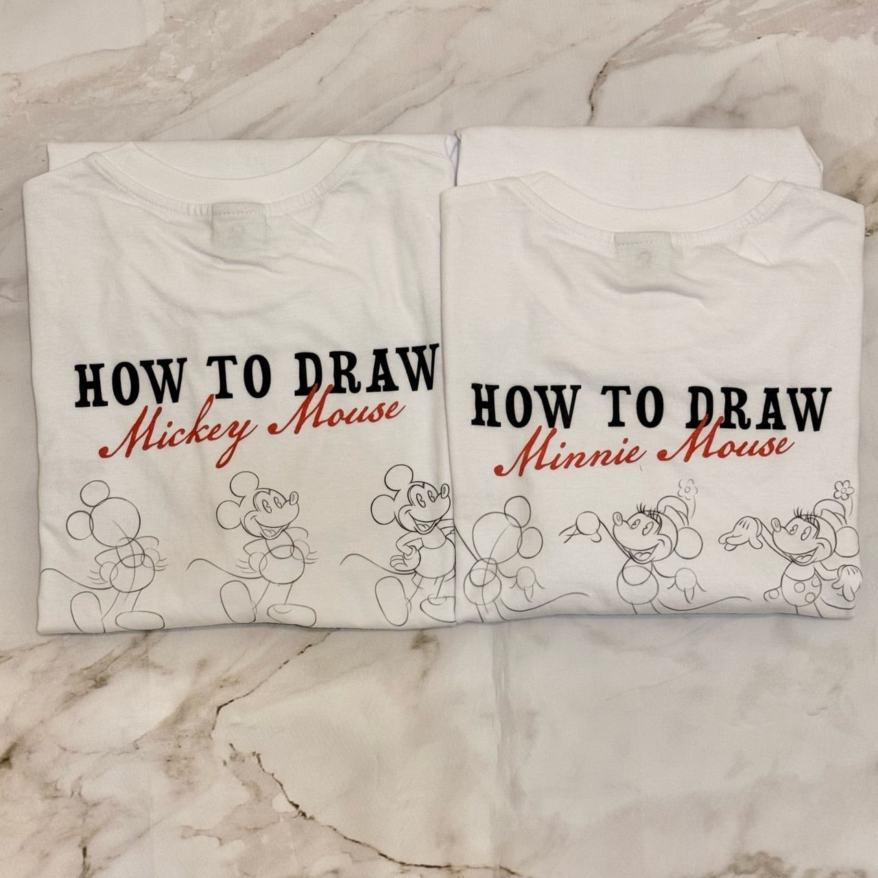 ドローウィングのデザインのミッキーとミニーが可愛すぎるバックプリントTシャツ。