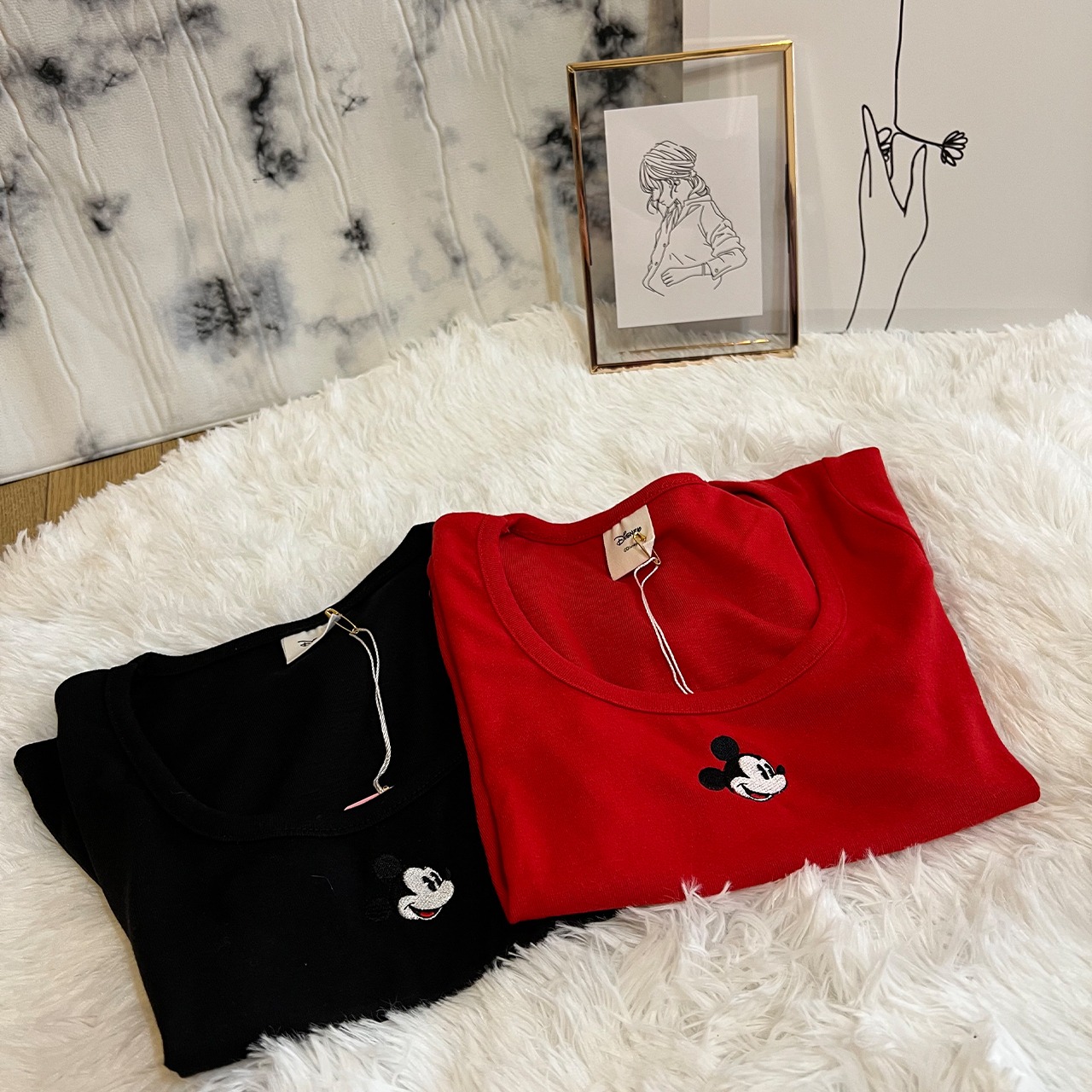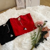 クロップド丈のワンポイントミッキーが可愛らしい1枚。