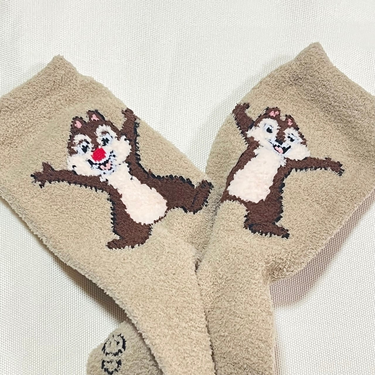 ディズニーキャラクターもこもこソックス ミッキー ミニー プーさん スティッチ チップとデール チップ&デール ドナルド デイジー