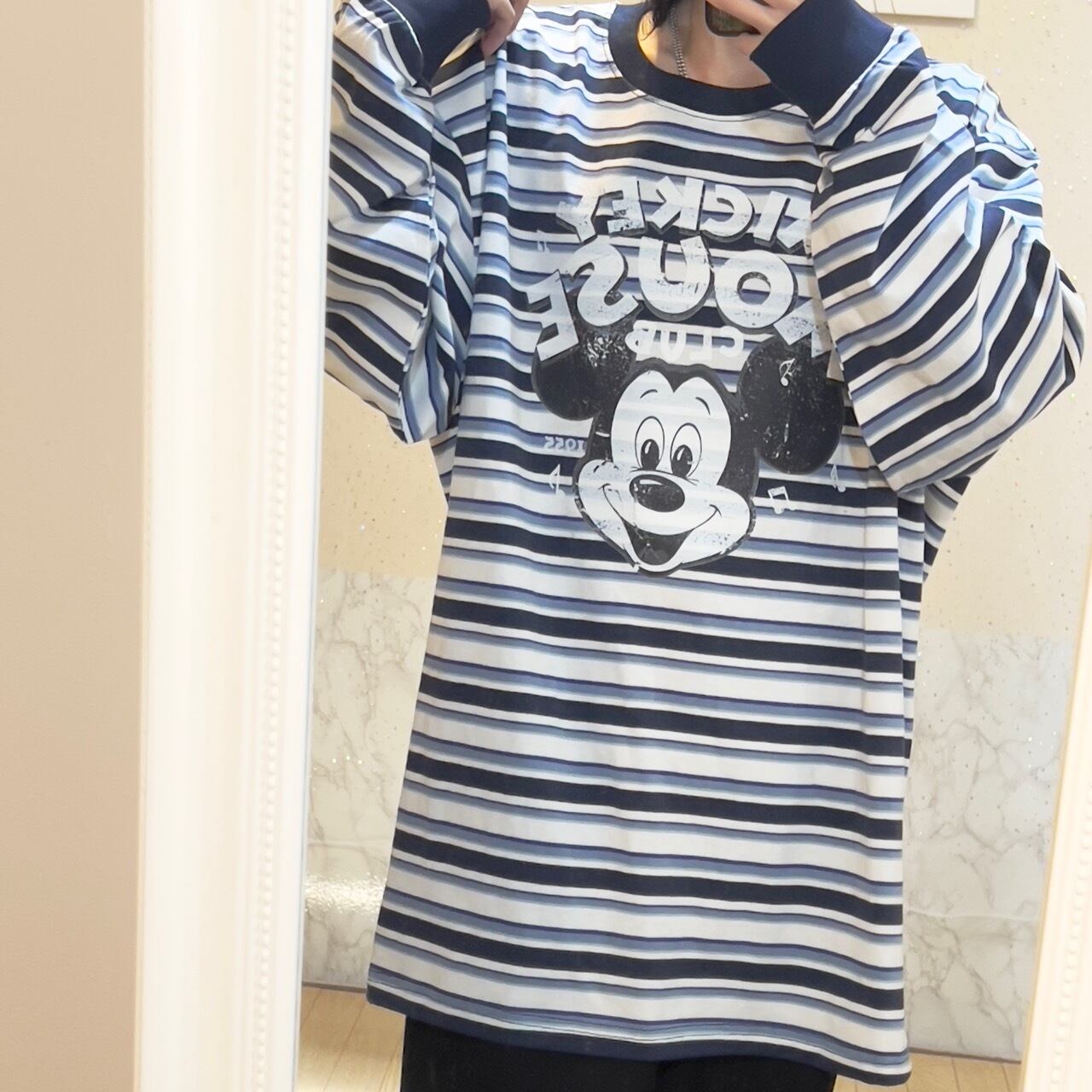 ミッキーマウスクラブ 配色 ボーダーロングTシャツ